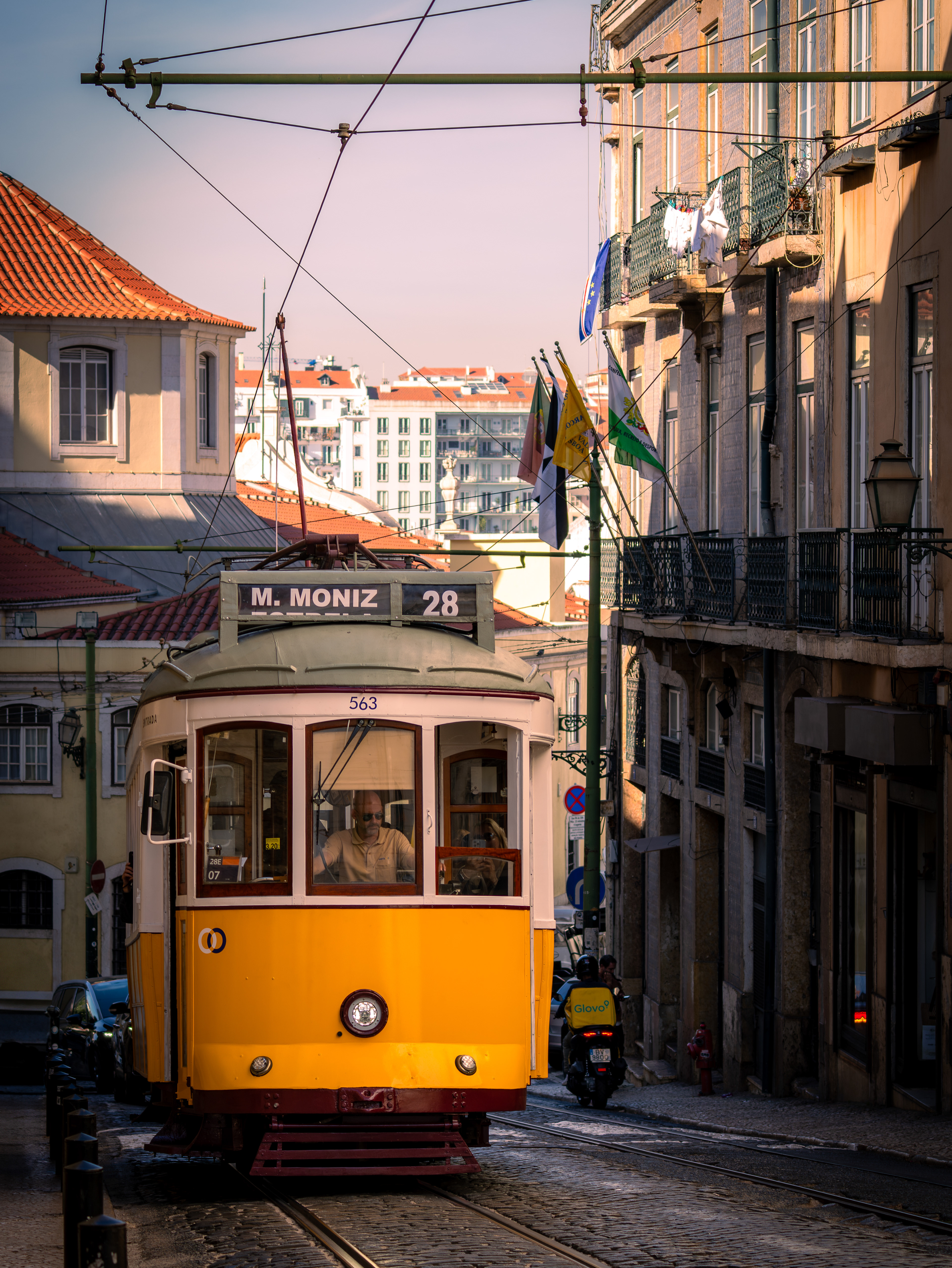 Lisbon moves slowly under warm light and faded colors.